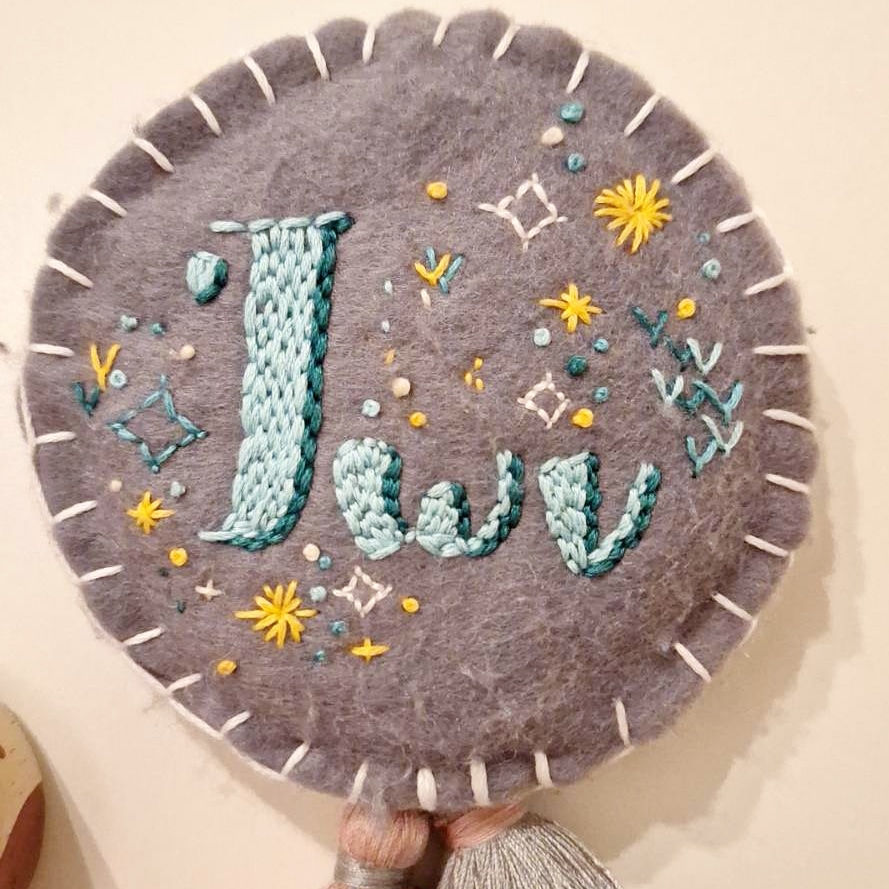 Exploring possibilities using textiles. Silkscreen printing, embroidery, crochet, and more. Creating three-dimensional decorative elements and unique home decor items with meaning.
